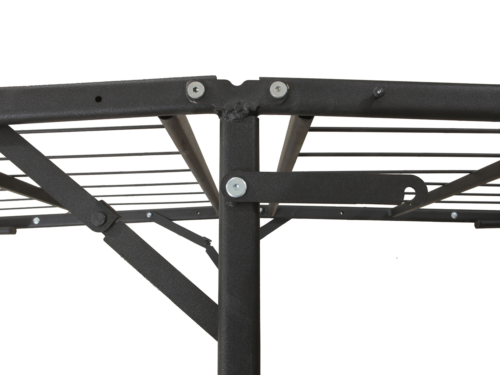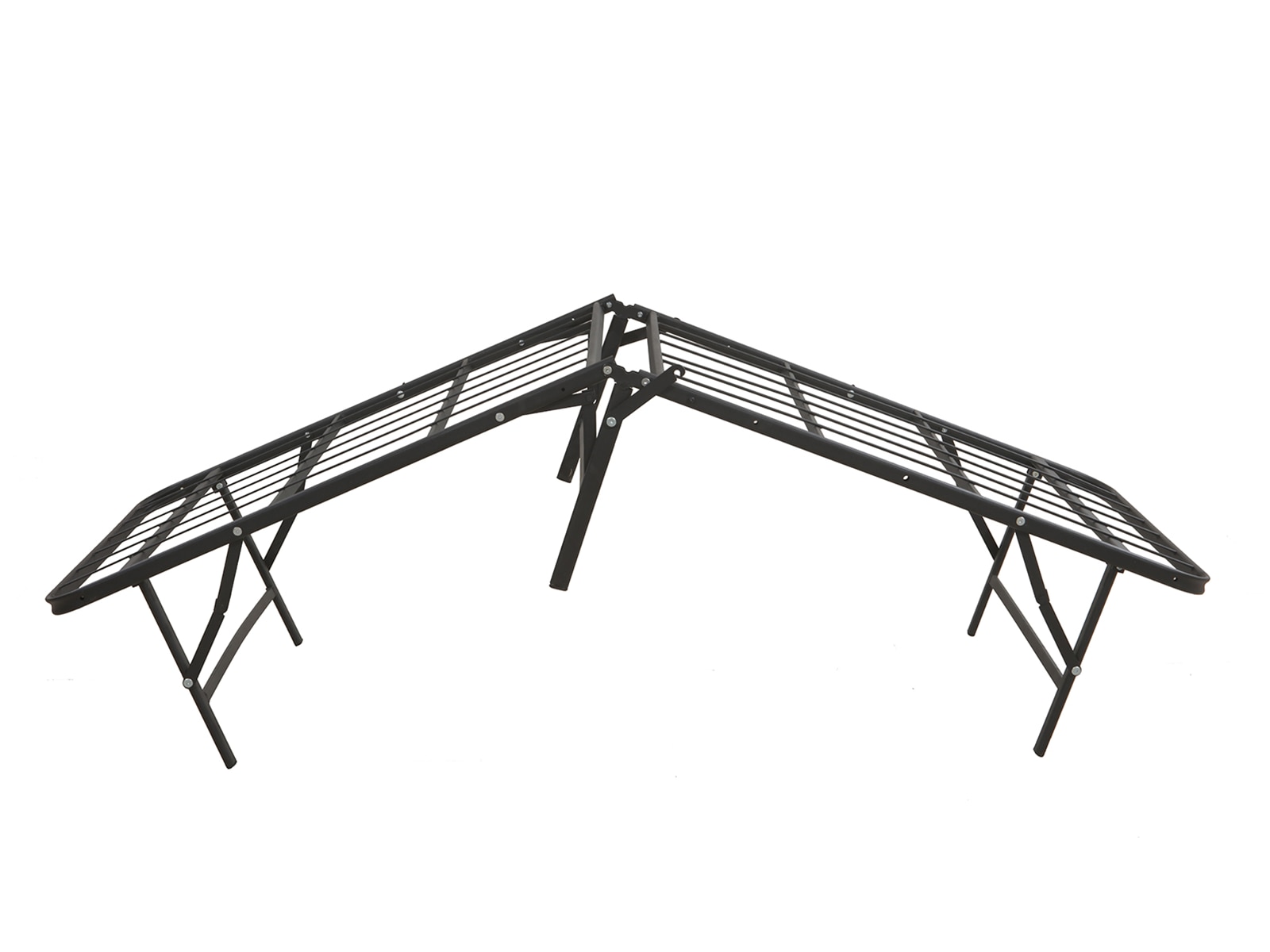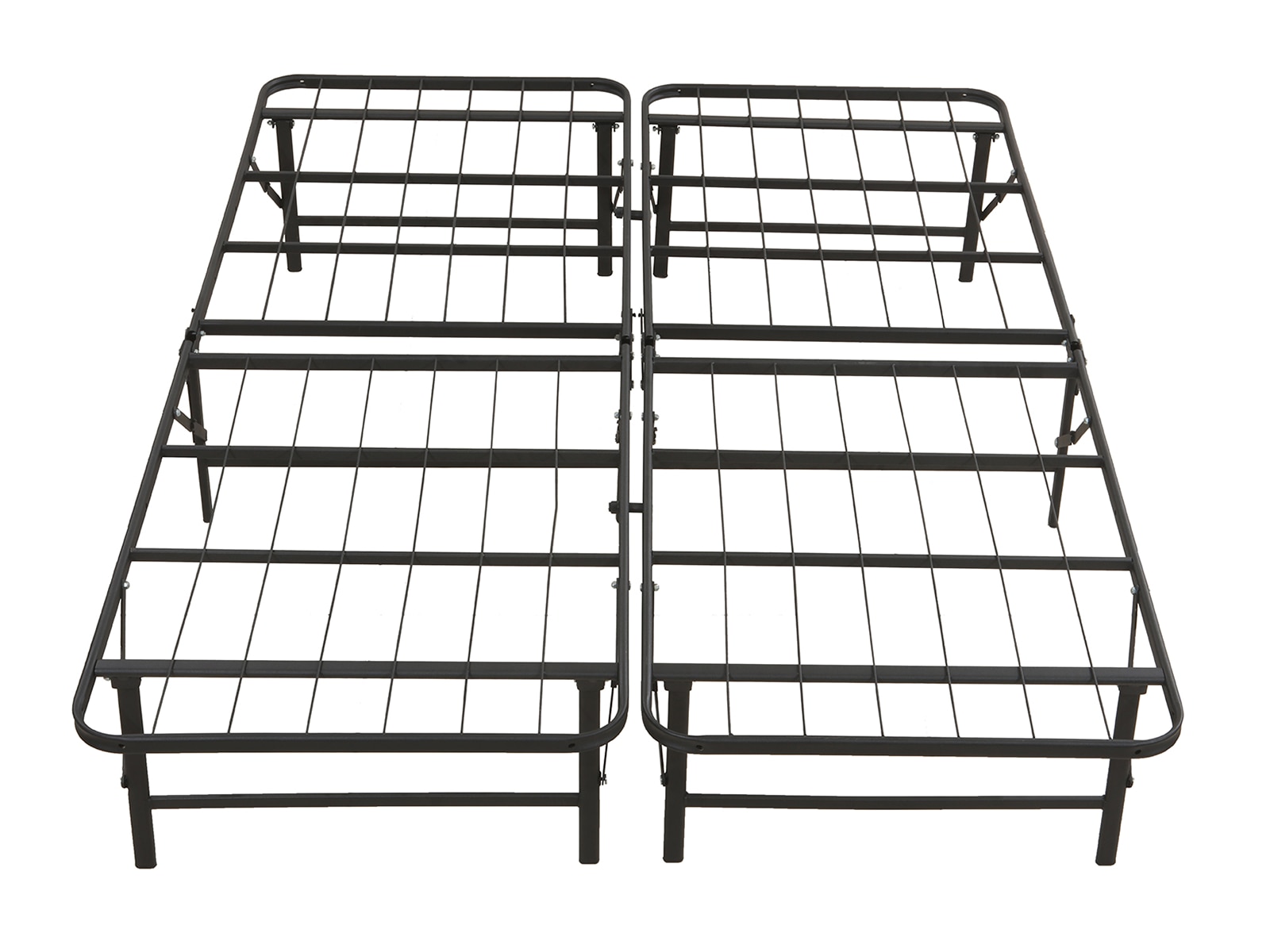 This heavy-duty 14-inch metal bed frame is a solidly constructed metal platform bed frame that provides superior support for your mattress. It is a low-cost alternative to traditional bed frames, foundations or box springs. This durable black metal frame supports every type of mattress with 13 inches of ample storage space beneath. It is foldable so that it easily fits through narrow hallways or doorways. Assembly is super easy, no tools are needed, and the frame can be used with or without a foundation. Headboard and footboard attachments not included.