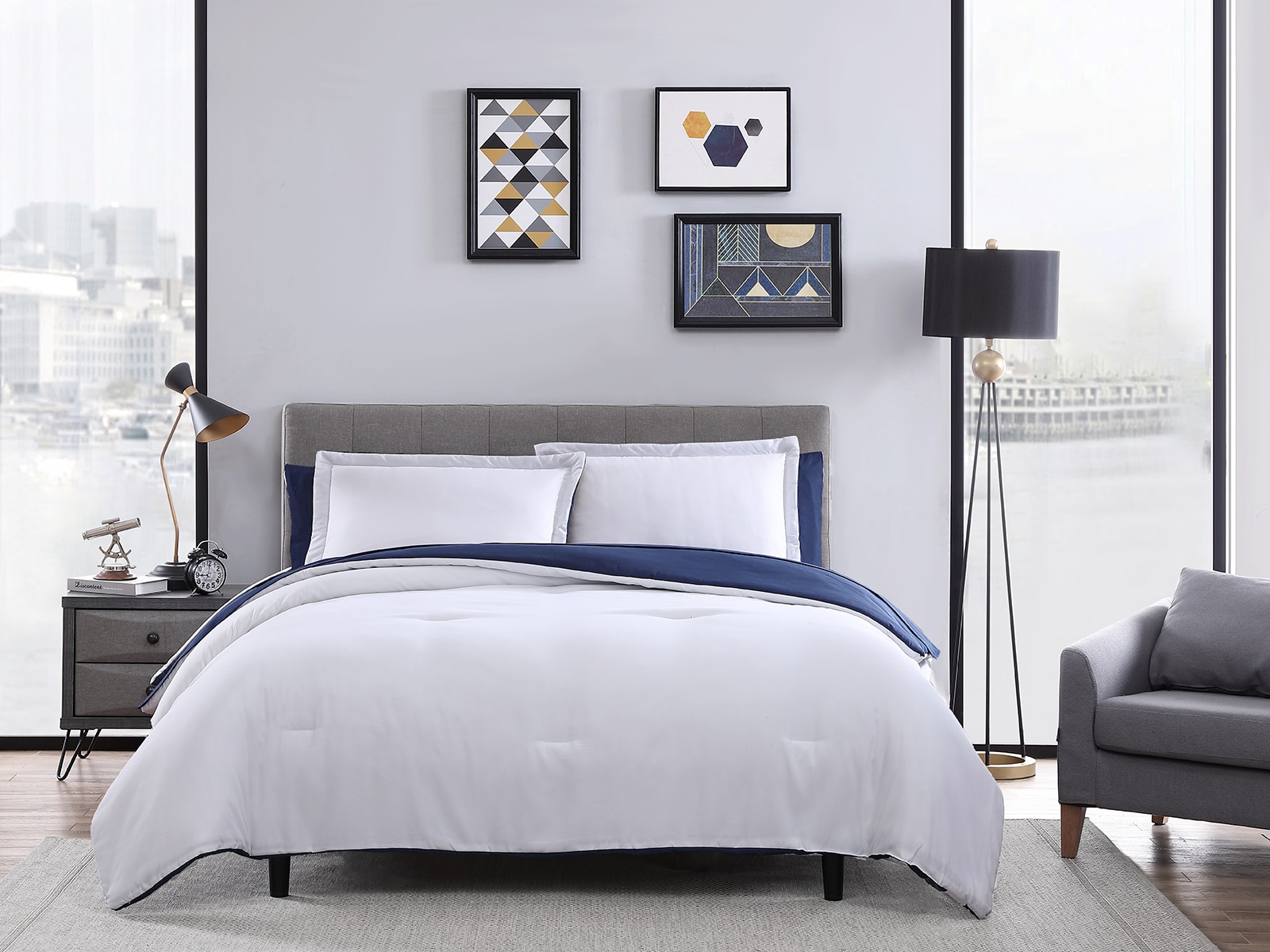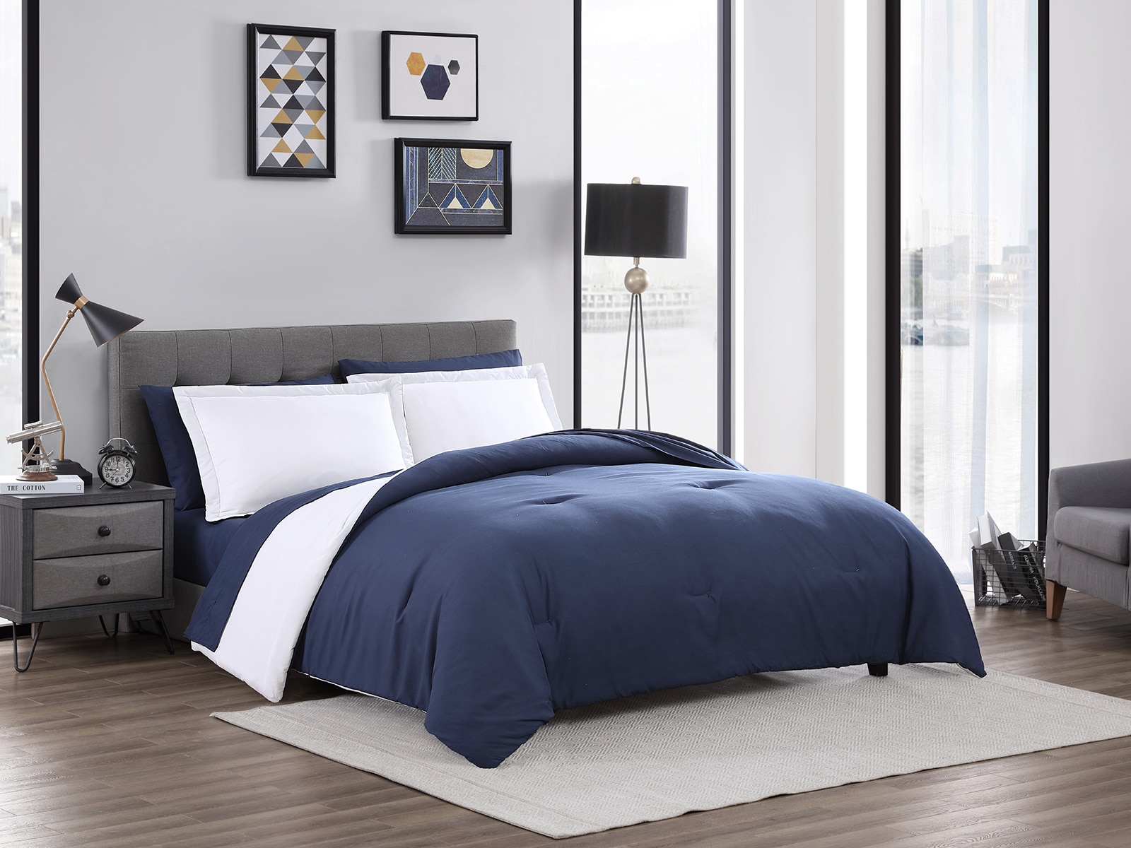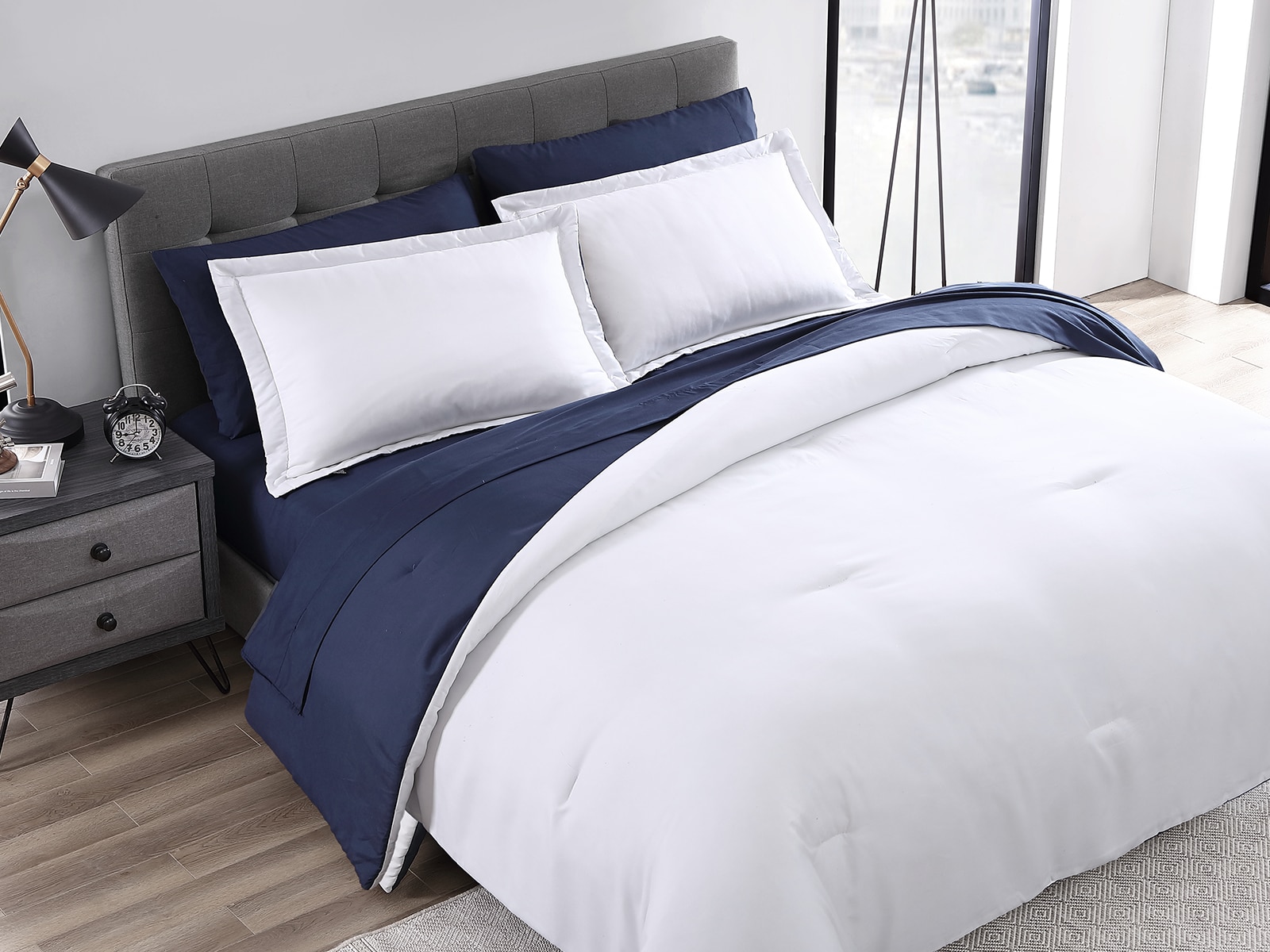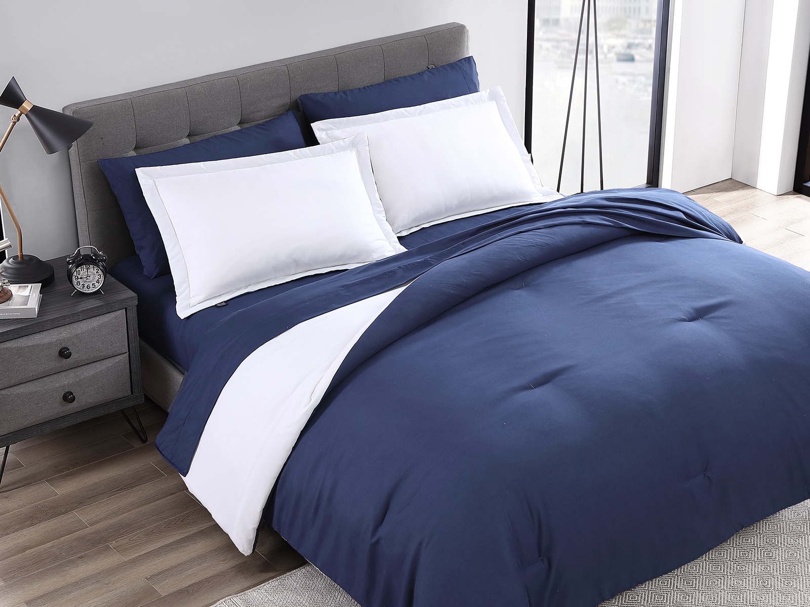 The Nesting Company Chestnut Reversible Comforter Set is a Versatile addition to any room. This set gives your room a complete makeover with this down alternative filling and two sides of contrasting colors for a mix-and-match look you’ll love. Made from super soft Microfiber, perfect for year round use. Featuring 1 comforter, 2 shams, 1 flat sheet, 1 fitted sheet, 2 pillow cases, this set completes your bed with ease and with a quick flip you have a whole new look. This set is machine washable for easy care.